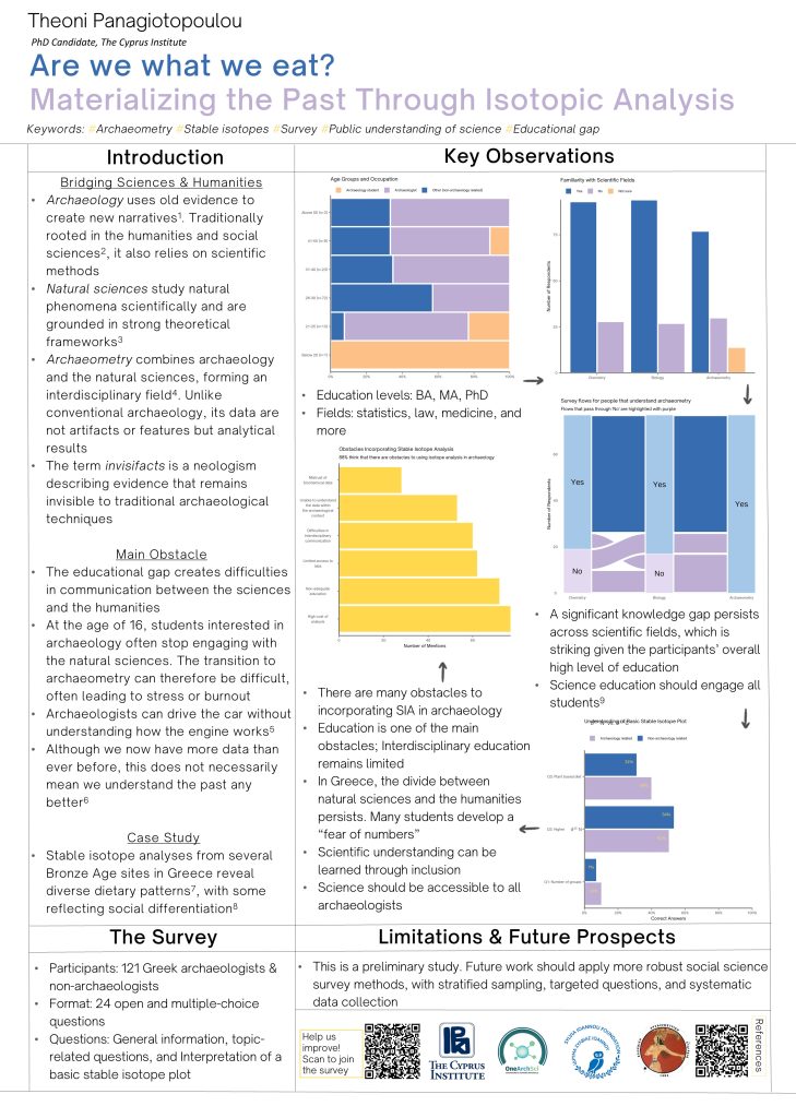 Theoni Panagiotopoulou (Supervisor: Dr. Efi Nikita) presented a poster examining how stable isotope analysis can help archaeology move beyond traditional theoretical frameworks that often limit the full integration of archaeological sciences.